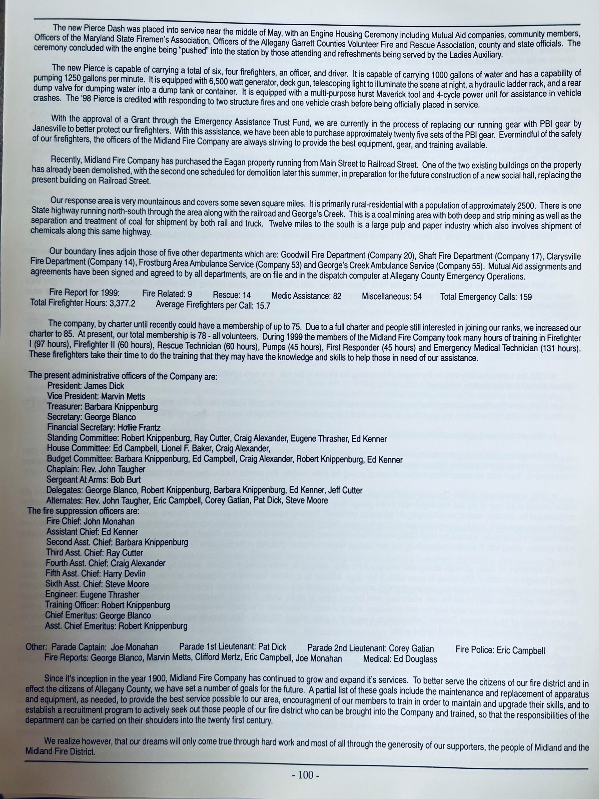 Midland Volunteer Fire Company was organized in 1900, and is still fighting fires with an all volunteer force. This page is dedicated to the men and women of the Midland Fire Company # 1.